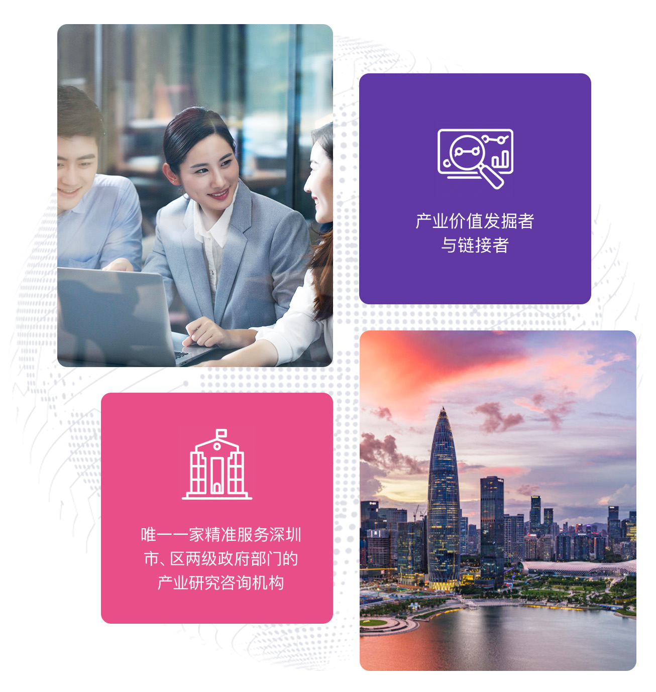 秉承“产业价值发掘者与链接者”理念,自2018年筹建以来,创始人团队始终坚持智库经济的新型服务模式,与政府企业、行业协会在产业资源对接服务、产业项目导入研究等方面开展精细化的智库咨询与顾问服务。
